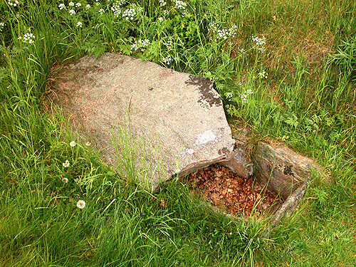 Langhøjens vestlige stenkiste hvor kobberskiven blev fundet i 1894. Her set fra sydøst.
