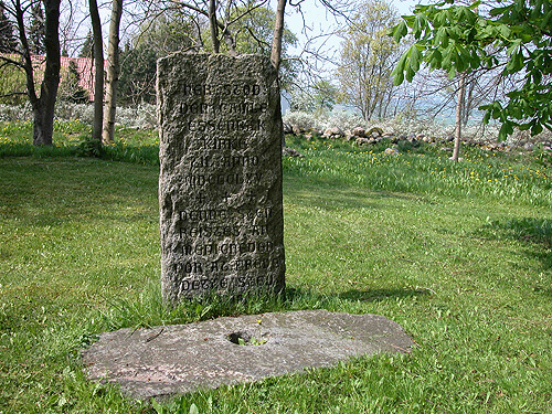 I nordvesthjørnet står en mindesten over kirkestedet.